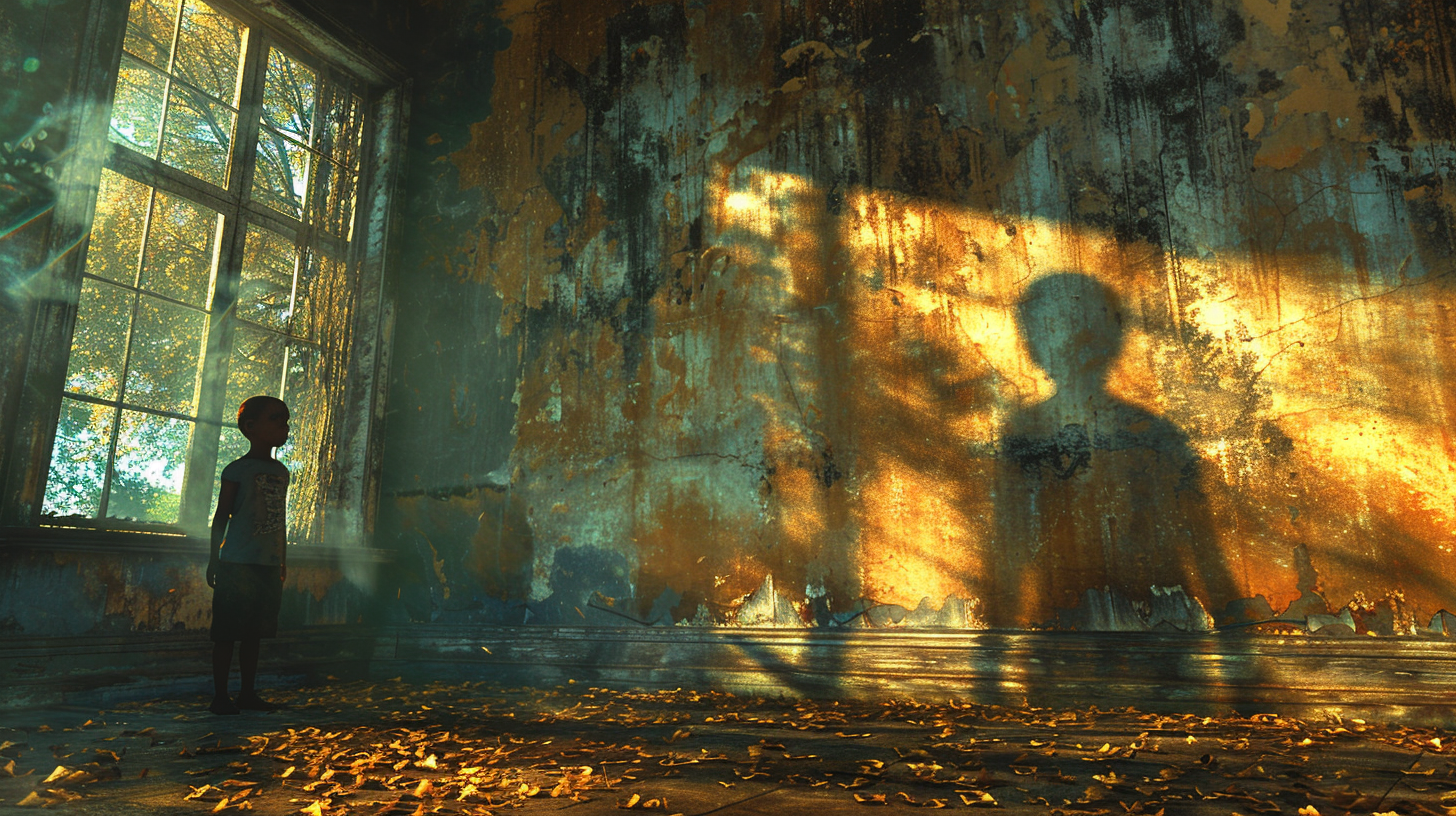 Playing in an old empty house, Jordan felt scared when he saw his shadow.